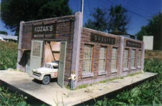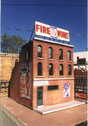 Downtown Deco produces a line of finely detailed structure kits. The kits include beautifully detailed Hydrocal castings, plastic Grandt Line doors and windows, full color signs and complete, easy to understand painting & aging instructions. Some kits also include laser cut stencils for painting the large signs on the sides of the structures. These kits are unique in the fact that the master patterns are all hand carved, brick by brick and stone by stone. This gives the buildings a much more realistic look than mass produced plastic or resin kits because it allows us to add much more detail and character to the castings. The company was founded in 1993 by two former professional Hollywood Scenic Artists. You can really see the attention to detail in their work. |
